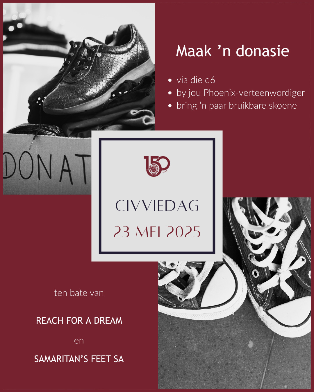 Bloemhoffers kan netjiese gewone klere op 23 Mei dra indien hulle ’n donasie via die d6 maak, kontant by hul Phoenix-klasteenwoordiger inbetaal of items skenk. Veral Samaritan’s Feet SA kan by bruikbare pare skoene baat – bring dit gerus na die mediateek.
