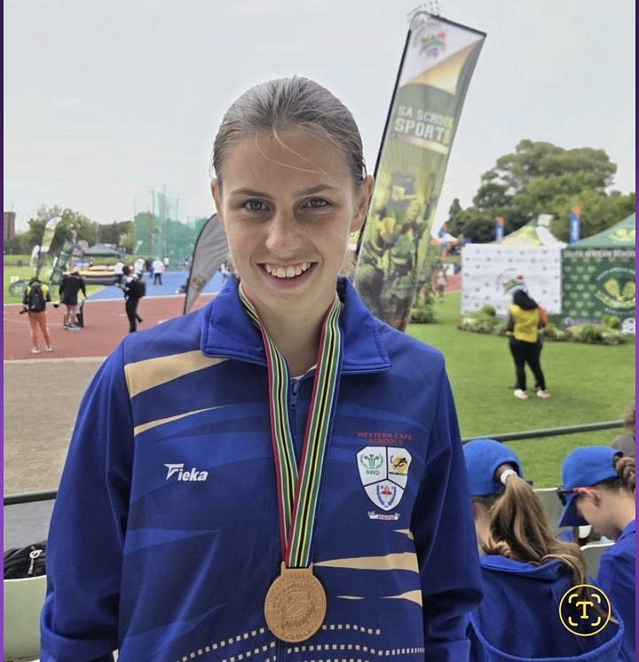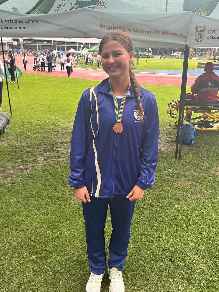 • Jeannie Myburgh (gr. 11) wen ook ’n brons medalje in die paalspring vir dogters o.17
