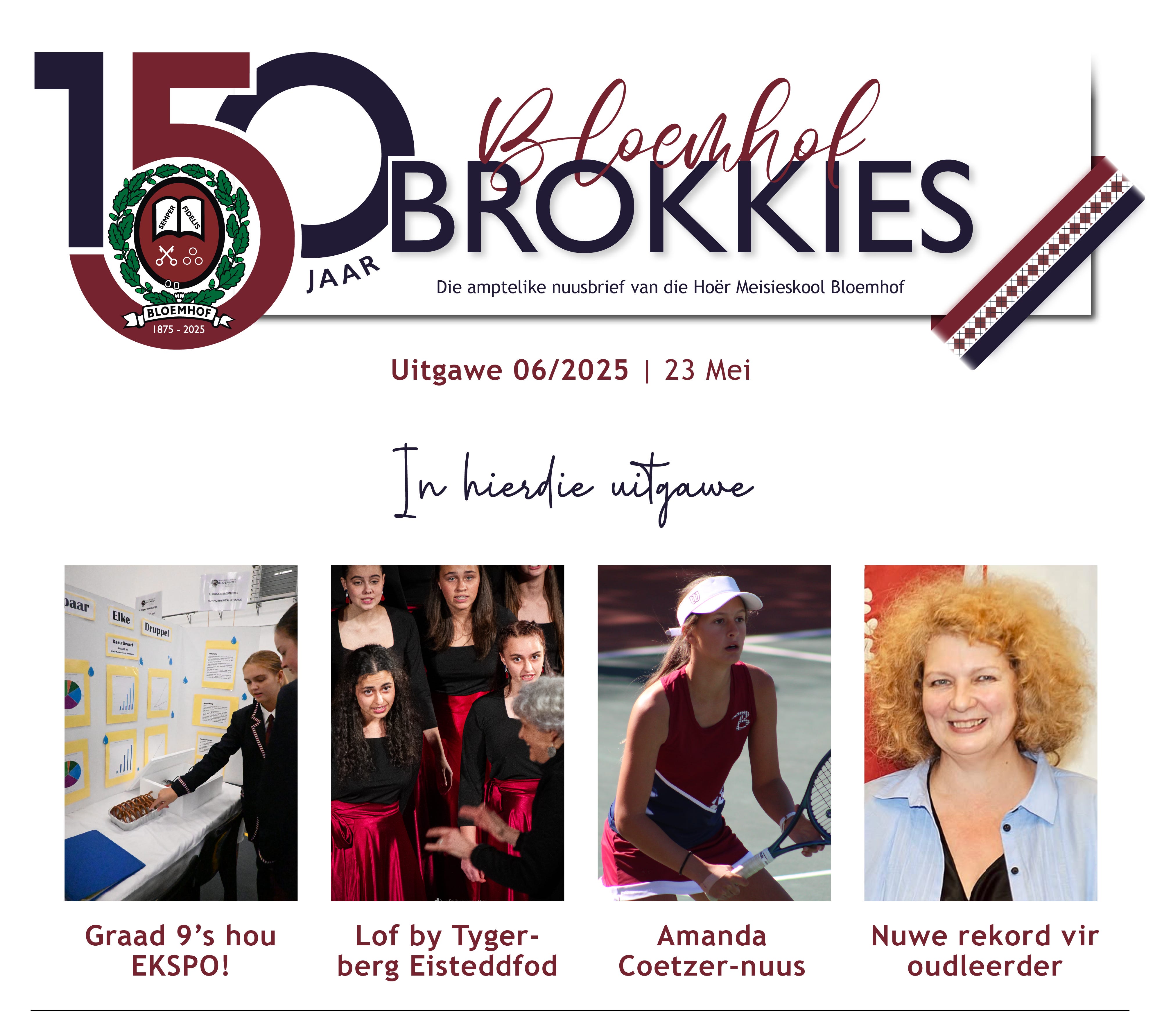 Ons doen moeite om die Bloemhof Brokkies so akkuraat as moontlik te publiseer, maar rapporteer asb. foute, deel nuus of gee algemene terugvoer HIER. Die volgende uitgawe van die nuusbrief word vir die einde van kwartaal 2 beplan.