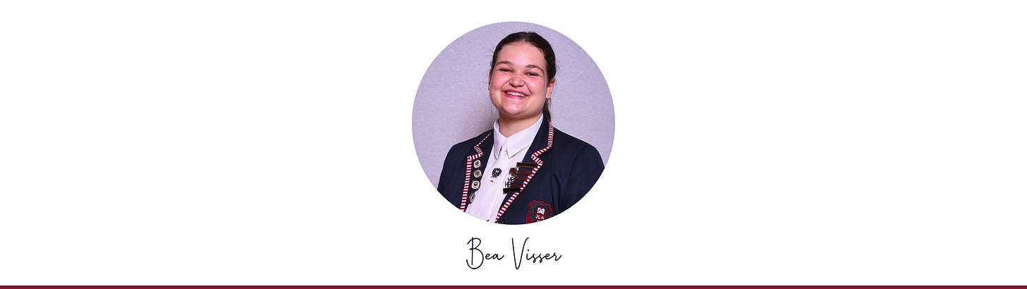 Ek is mal daaroor om rondom mense te wees en dit is vir my ’n groot voorreg om elke dag met ’n verskeidenheid mense in Bloemhof te werk. Die slegste deel… Dubbel periodes (tensy dit Geskiedenis is).
