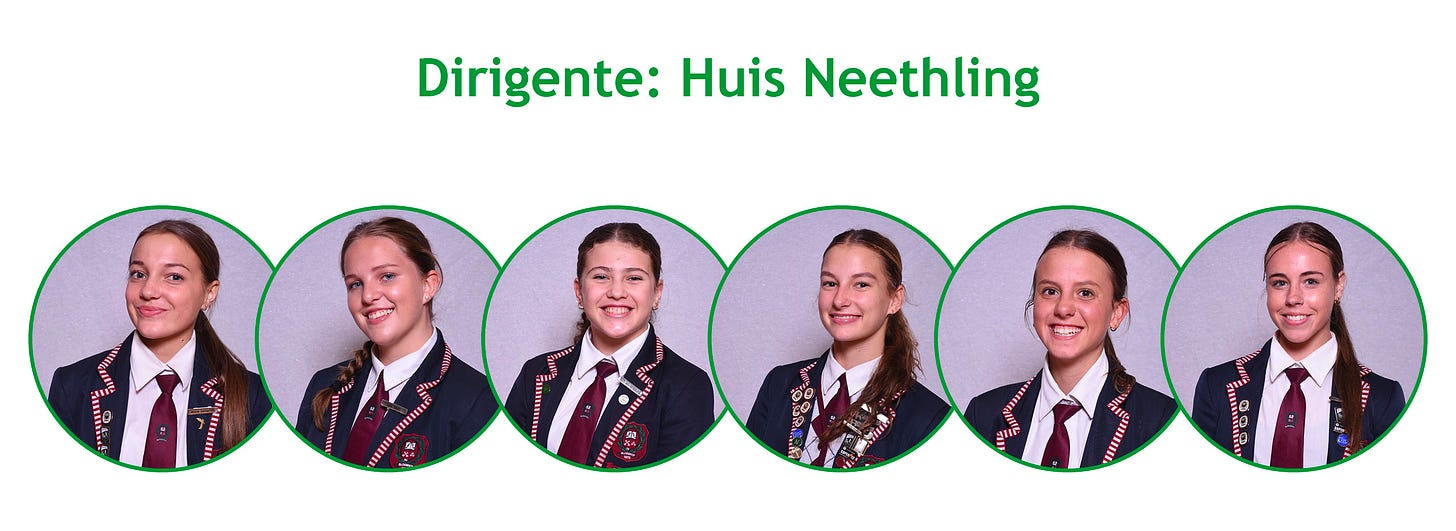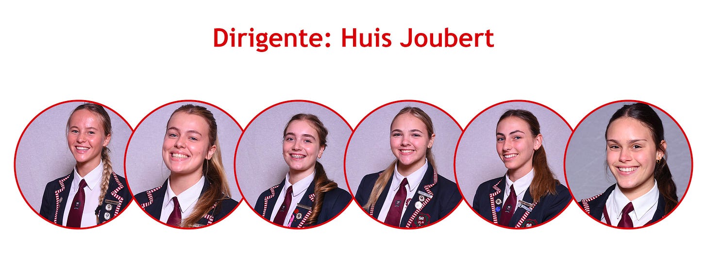 “Die huisleierverkiesingsproses is, na baie navorsing en oorweging, vanjaar aangepas. Ons maak dus nou ses dirigente per huis bekend wat hul huise sal verteenwoordig. Later vanjaar sal daar vanuit daardie groep van 18 dirigente ’n groep van nege huisleiers verkies word, ongeag hul huise. Die nuutverkose huisleiers sal dan die skool by alle skoolverwante geleenthede verteenwoordig.”