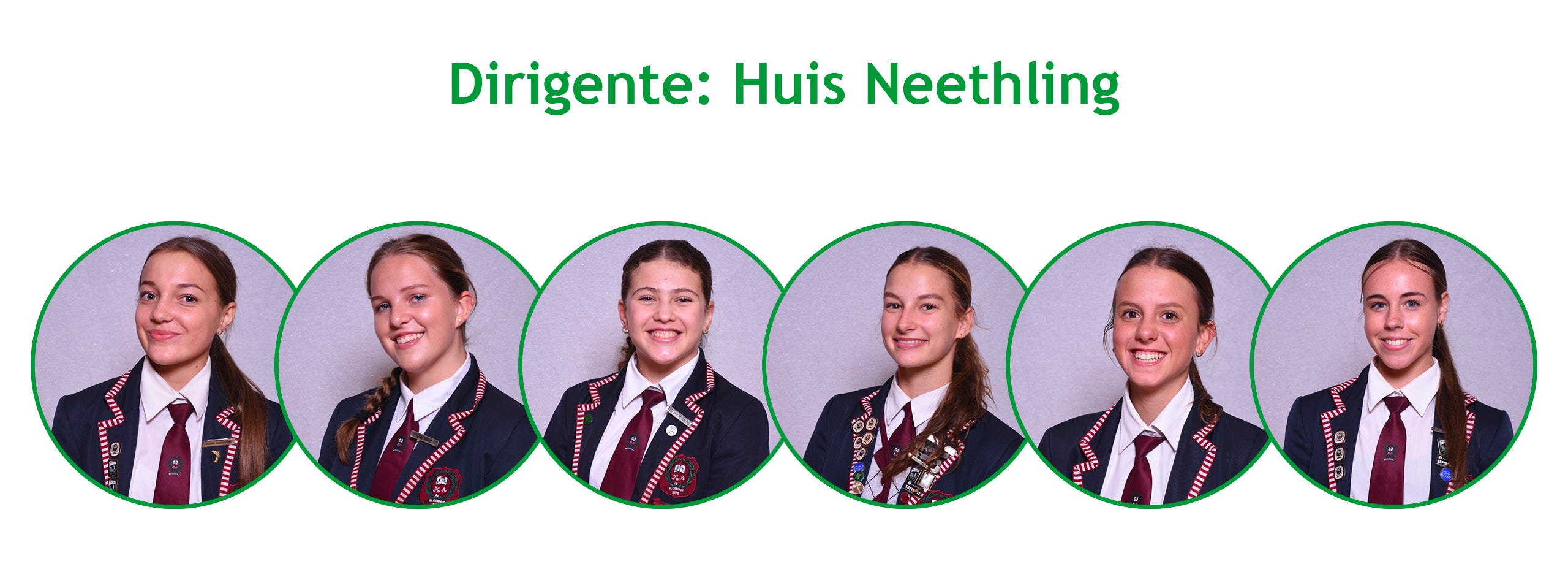 Huis Neethling: Megan Swanepoel, Lana Swart, Esti van Rensburg, Daniela Viljoen, Isabella Visagie en Emmerie Walters.